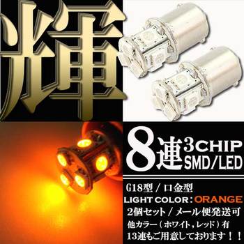 8連 3chips(計24連) SMD-LED球、G18 BA15S型のシングル球2個セットです。